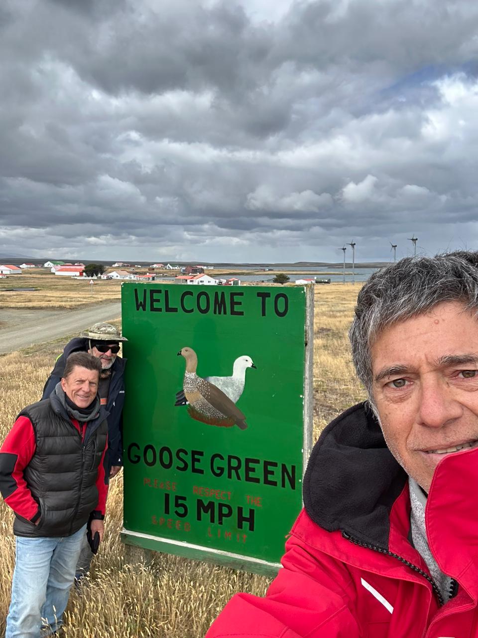 Al día siguiente regresamos al muelle comercial de las Falklands company y el día 23 partiríamos desde allí hacia Goose Green (pradera del ganso ) para visitarla, lo mismo que al poblado de Darwin, al cementerio de nuestros caídos y la pista de aterrizaje. Lugares históricos donde tuvieron lugar feroces combates.