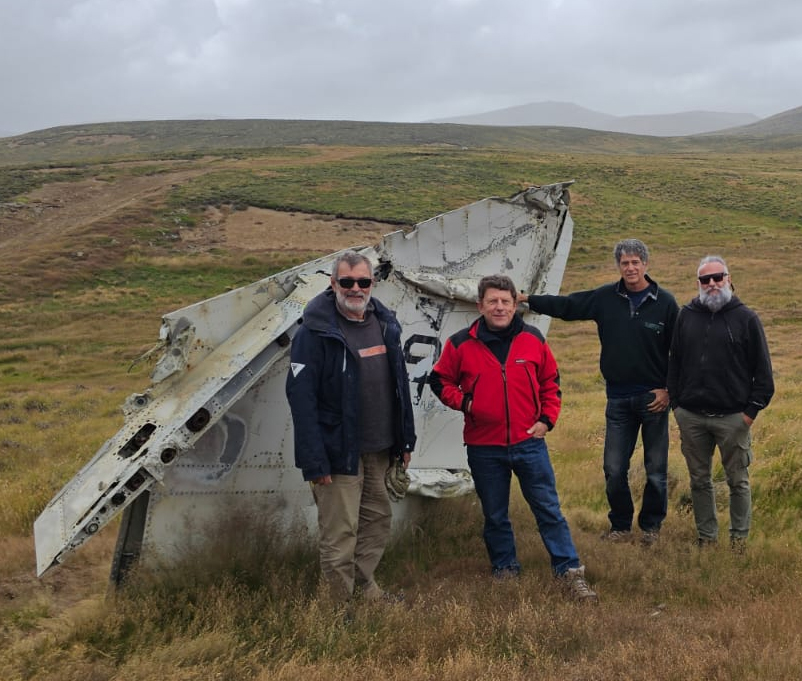 A este importante sitio histórico fuimos caminando desde el centro de Stanley, con la guía del veterano de guerra y tripulante Alejandro recorrimos los más de 15 Km de los cuales una parte, hasta salir de la ciudad es calle, luego ruta de ripio hasta Moody Brook sitio -donde los marines estaban alojados antes de la guerra- que ya no existe mas. Desde allí hay que apartarse de la ruta y comenzar a subir por los montes, el primero Wireless Ridge para luego de aprox 90 minutos extra llegar a las alturas del monte Longdon donde tuvo lugar la batalla del mismo nombre en la cual murieron muchos compatriotas al igual que tantos británicos cuando avanzaron para conquistar la posición. La descripción de la misma se halla en los libros, no es mi intención repetirla. Sólo diré que fuimos a rendir tributo a nuestros muertos que dieron su vida por la patria y a tantos otros que ofrendaron su mejor esfuerzo con el mismo objetivo. En el lugar los británicos han colocado un cenotafio cerca de la cima y por doquier recuerdan a sus muertos con cruces y placas conmemorativas. Nosotros los Argentinos tenemos prohibido recordarlos allí o en otros campos de batalla, sólo los podemos recordar en el cementerio de Darwin donde están identificados y enterrados gracias al trabajo en equipo de ambas partes.