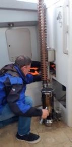 21/NOVIEMBRE. Preparativos finales para la partida del Caoba Rumbo Sur. De nuevo toca limpiar cubierta. Varios tripulantes realizan diversas tareas en el barco. El stopper ya no me habla. Recuerdo una charla con el capitán: “No es necesario bajar el stopper. Con varias vueltas al molinete es suficiente”.