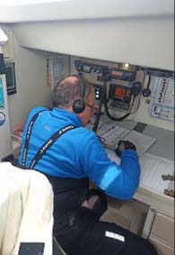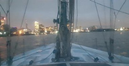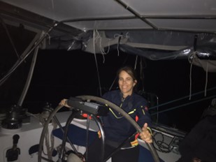 La tripulación se prepara para la navegación nocturna. Se toman dos rizos de mayor y se verifica el equipo de luces y señales. La visibilidad en el mar es buena de noche porque además de las estrellas nos acompaña la luna. La tripulación establece turnos de 2 horas. Por las noches el viento aumentó, pero nunca llegó a incomodar. El barco avanzó con mayor rizada y yankee, lo cual nos permitió navegar a una velocidad que varió entre los 5 y 6 nudos. La tripulación se distribuye para el manejo de las velas y las tareas de navegación. Las guardias se comenzaron a las 22hs, de grupos de 2 tripulantes y por un máximo de 2 horas. La visibilidad siempre fue clara, la temperatura algo fresca, pero lo más increíble de esta travesía para mí fueron las increíbles noches repletas de estrellas que nos guiaron y acompañaron en las guardias nocturnas.