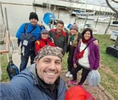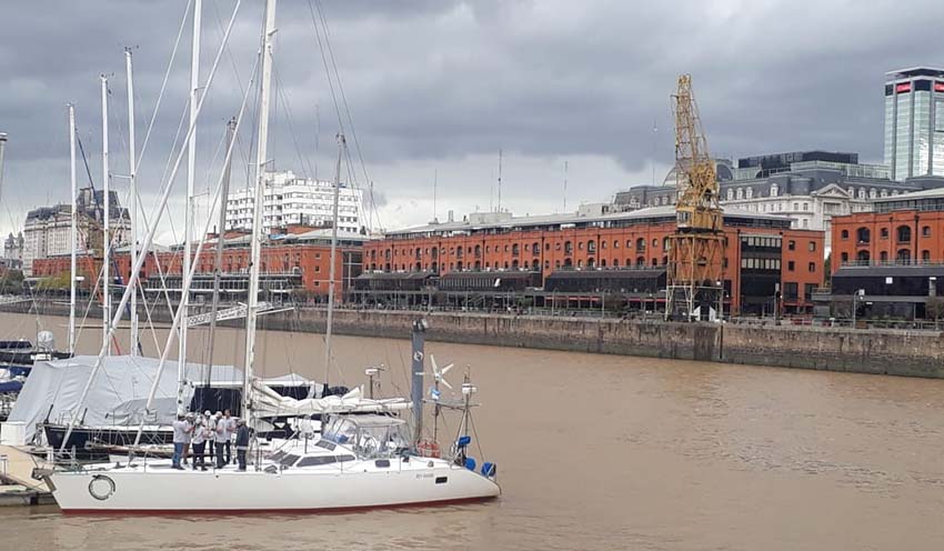 El movimiento en la marina empezó desde temprano. Cerca de las 6 AM llegaron los primeros tripulantes junto con el profe y coordinador Aníbal; al rato Paula, con la prensa; amigos, familiares y tripulantes de otras piernas completaban el grupo.