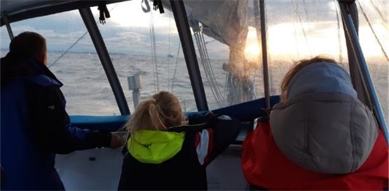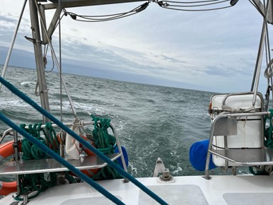 Al final del segundo día de navegación, el viento finalmente rotar hacia el norte, lo que tanto esperamos y lo que nos obliga a justar las velas y mantener un mejor rumbo en dirección a Mar del Plata, ya bordeando la costa. Conforme pasan las horas van quedando atrás la Bahía de Samborombón, Pinamar, Villa Gesel. Al amanecer del tercer día a bordo, empieza a vislumbrase la costa de Mar del Plata. La navegación sigue siendo tranquila y también la visibilidad. Lamentablemente esta vez no vemos delfines, sólo un mar de un color turquesa-verdoso hermoso y alguna que otra ave que decide acompañarnos.