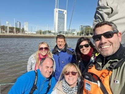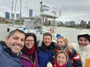 Una vez más me sumo a la tripulación del Caoba para iniciar la primera etapa de la travesía por el Atlántico Sur con destino final a las Islas Malvinas. Esta vez participó únicamente de la etapa Buenos Aires – Mar del Plata. Somos un total de 7 tripulantes: Sigfrido, Cecilia, Claudia, Carlos, Silvana y Pablo. Con algunos ya participé de singladuras, con otros será mi primera navegación. En la etapa preparativos vía zoom y luego grupo de Whatsapp como siempre prima una destacada organización de las comidas, revisión y actualización de elementos de primeros auxilios y una buena predisposición general que anticipa que todo fluirá. En lo personal, además de compartir con amigos navegantes, para mí navegar en el Caoba representa una oportunidad de salir otra vez al mar, acumular millas náuticas y seguir aprendiendo sobre la vida a bordo que me gusta tanto.