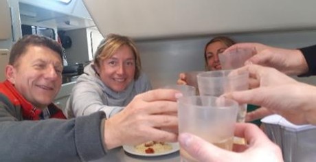 Diré en cambio que disfruté de cada minuto al timón del que me adueñé durante muchas horas. Que la tripulación, toda, se portó de maravillas y que comimos (y bebimos) como los dioses.