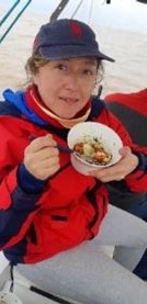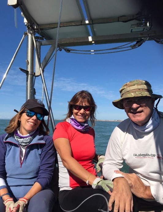 Dejamos la Bahía de Samborombón el lunes a la mañana, y con ella, el agua de río. Nos adentramos en el mar, y por ser mi primera experiencia marítima, la viví como un bautismo, sentada en la banda de babor, viendo romper las olas que se cargaban cada vez con más espuma. Al rato, aparecieron las playas por estribor, y me senté mirando extasiada el paisaje, como quien mira una película. Juan nos preparó un arroz exquisito con verduras y carne que había llevado Coco (mención especial a los chef ). Prepararon dos fuentes enormes con varias cucharas y compartimos el almuerzo con ese marco de fondo, en comunión entre nosotros y con la naturaleza.
