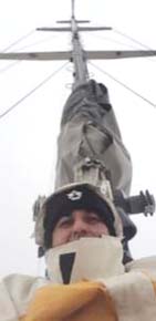 12/MARZO. Puso los primeros escalones al mástil del Caoba. Mi tarea era subir y bajar al capitán con un arnés, alcanzarle sus herramientas y bajar el stopper (ante todo, la seguridad del capitán).