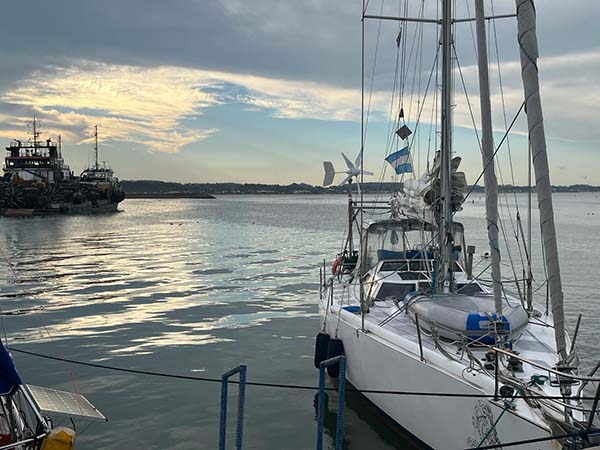 Luego del fin de la cuarentena, fuimos el primer barco en zarpar desde Buenos Aires para una salida de largo aliento, así que llamábamos la atención. El barco, preparado para la ocasión, empavesado y con 9 tripulantes ponía lo suyo para decir “¡acá estoy!”.